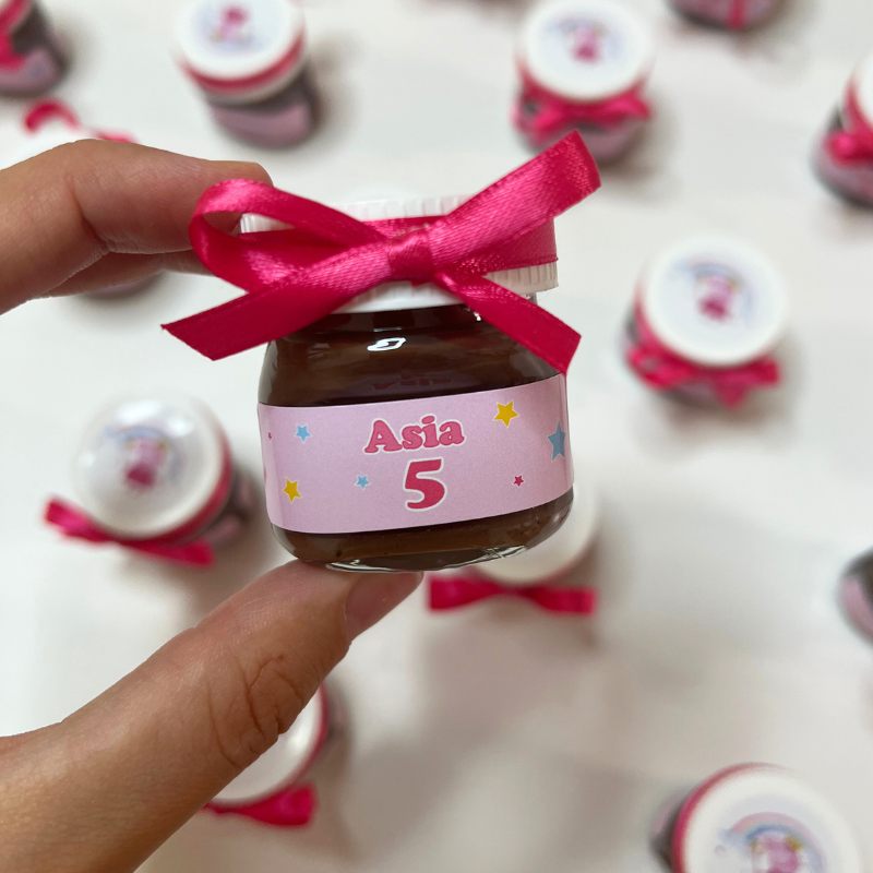 Nutellina 25gr a tema; perfetta per arricchire il buffet del tuo baby party e renderlo ancora più originale e personalizzato.